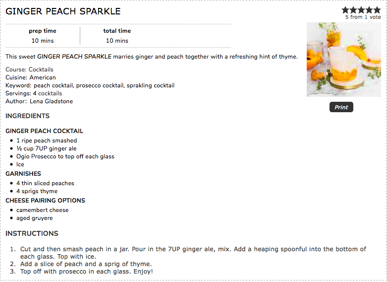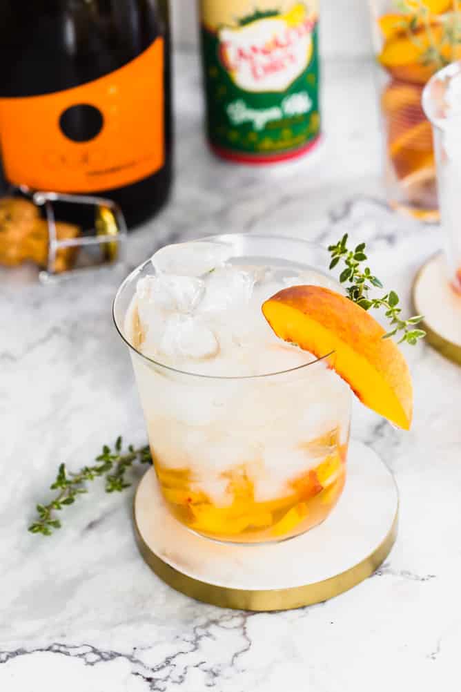 This sweet GINGER PEACH SPARKLE marries ginger and peach together with a refreshing hint of thyme.