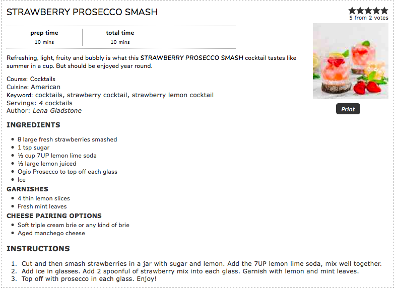 Refreshing, light, fruity and bubbly is what this STRAWBERRY PROSECCO SMASH cocktail tastes like — it’s summer in a cup…but should be enjoyed year round!