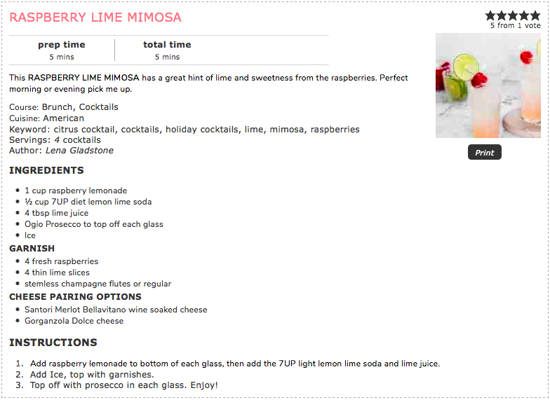 This RASPBERRY LIME MIMOSA has a great hint of lime and sweetness from the raspberries. Perfect morning or evening pick me up.