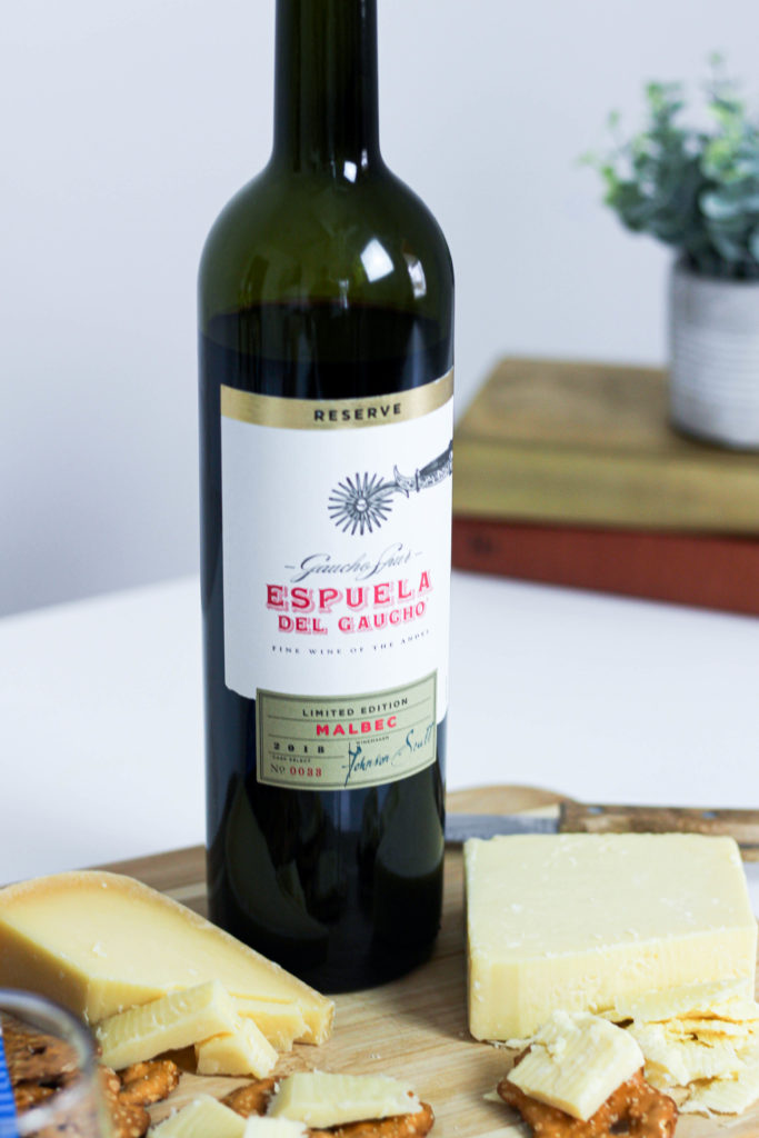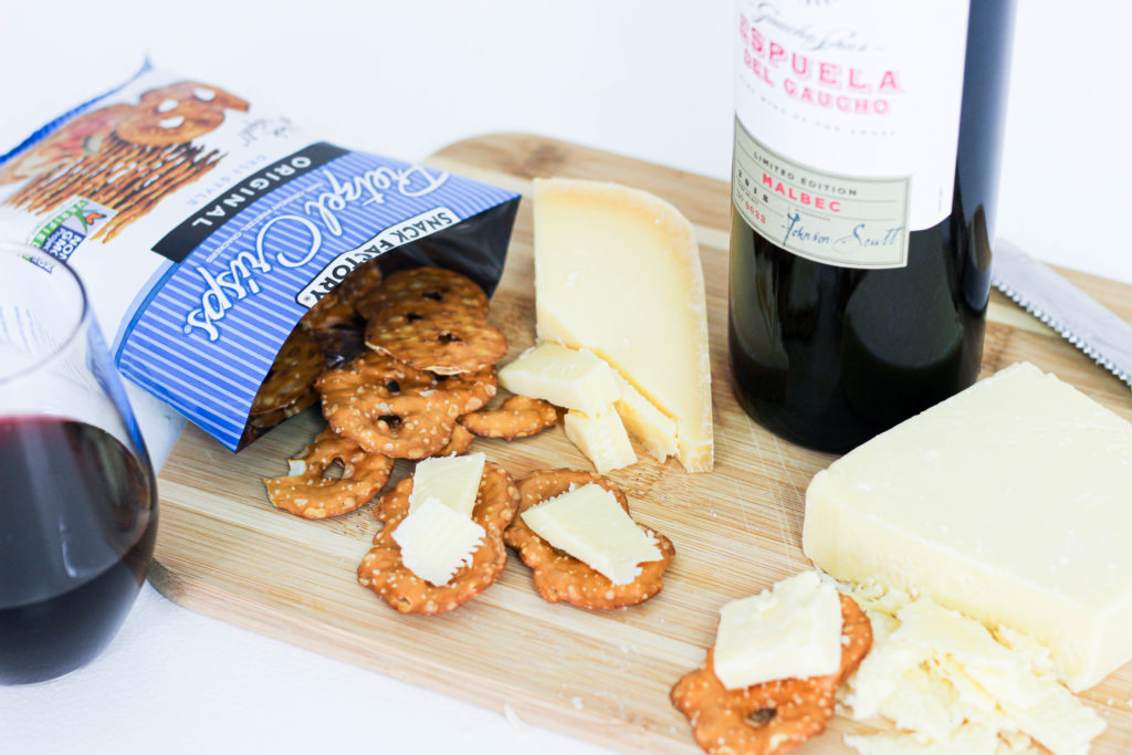 We paired this Malbec with some Pretzel Thins and a pair of Murray cheeses. We used both English Cheddar as well as their North Sea Cheese and we highly recommend both. They are the perfect pairing to compliment your glass (bottle?) of Malbec.