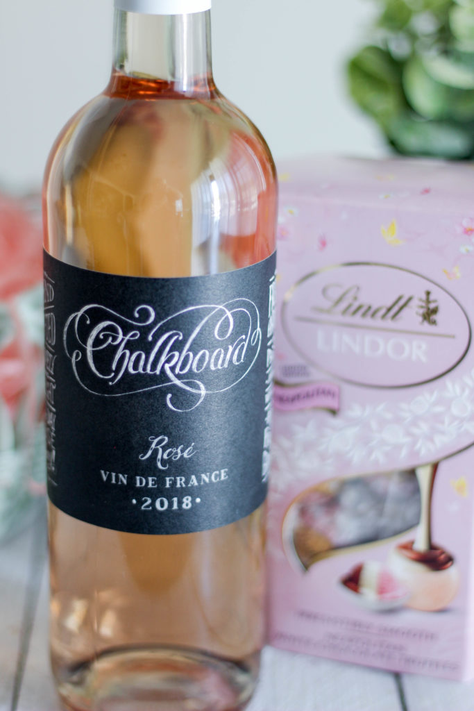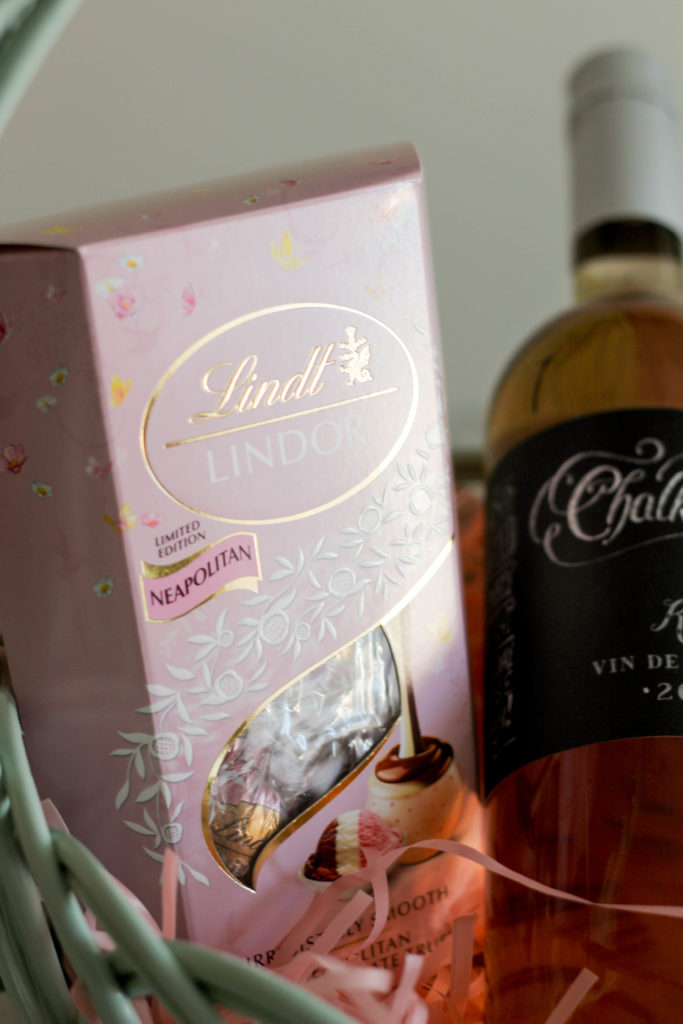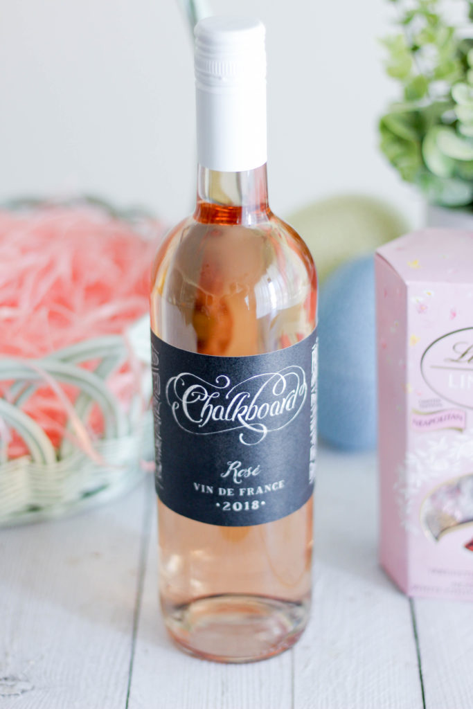 For this little gift, we went with the perfect spring-pink drink — our Chalkboard Rosé — and paired it with these delicious, limited edition Lindt Chocolate Neapolitan Truffles! All we did was grab a cute basket while on one of our *essential* grocery store trips, added some pretty easter grass to the bottom, and put the wine and chocolate inside! So simple, so cute, and thoughtful enough to remind your people that just because we’re not together, doesn’t mean we can’t still celebrate!