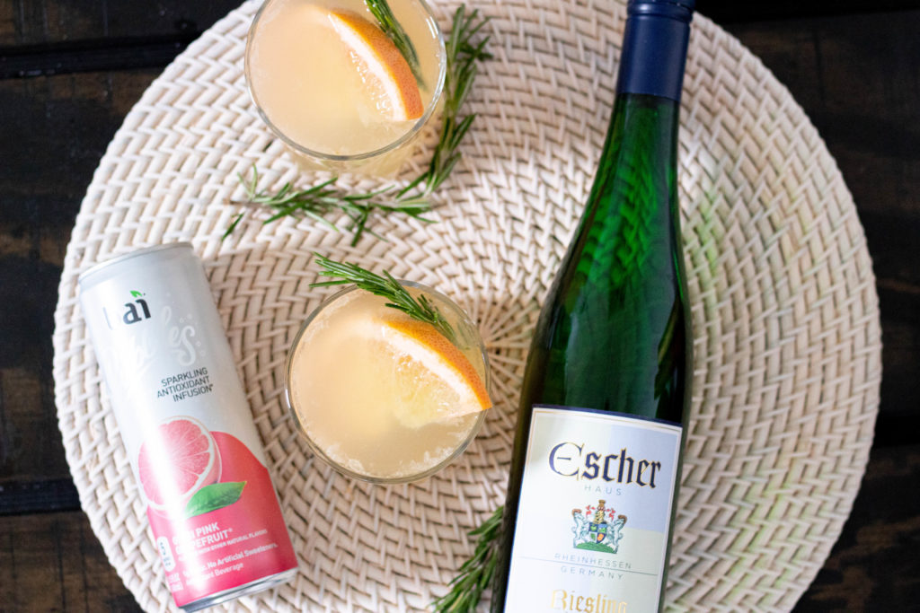 Pour Bai Bubbles in a glass until about 1/3 filled and top with chilled Escher Haus Riesling. Finish with the juice of 1/2 a grapefruit. Garnish with a sprig of rosemary and a slice of grapefruit in the glass.