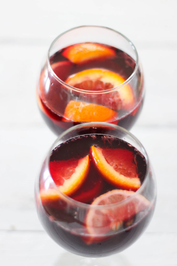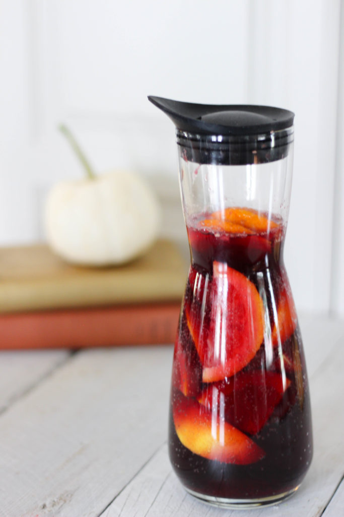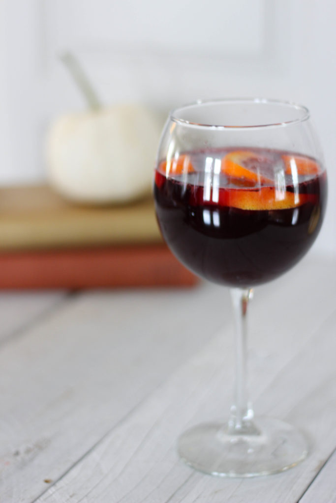This sangria is the PERFECT blend for the red-wine lover as well as the trying-to-become-a -red-wine-lover. The fruit helps with some of the normal dryness of the Cab, while still being subltle enough to not take away from the bold flavors the cabernet has to offer. This one is so easy to double or triple batch, too, to serve at a fall party or even on Halloween! YES PLEASE!
