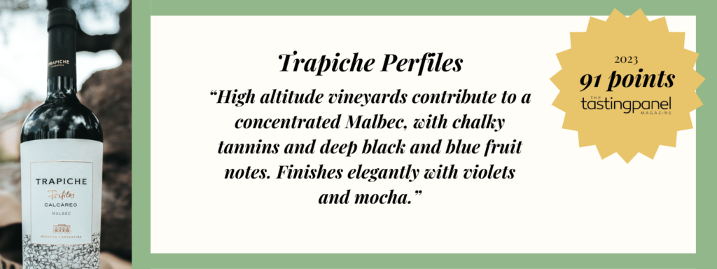 Starting with two wines, Trapiche Perfiles and Trapiche Oak Cask. Each is a robust and vibrant malbec with their grapes grown over 4,300 feet above sea level in Argentina. We recommend pairing these bottles with Brie, Gruyere, Asiago, and Mild Cheddar cheeses for a dynamic flavor pairing. Add classic water crackers, dry salami and spicy Sopressata on the side for a robust snack plate to compliment these tannin forward wines that are best enjoyed with food.